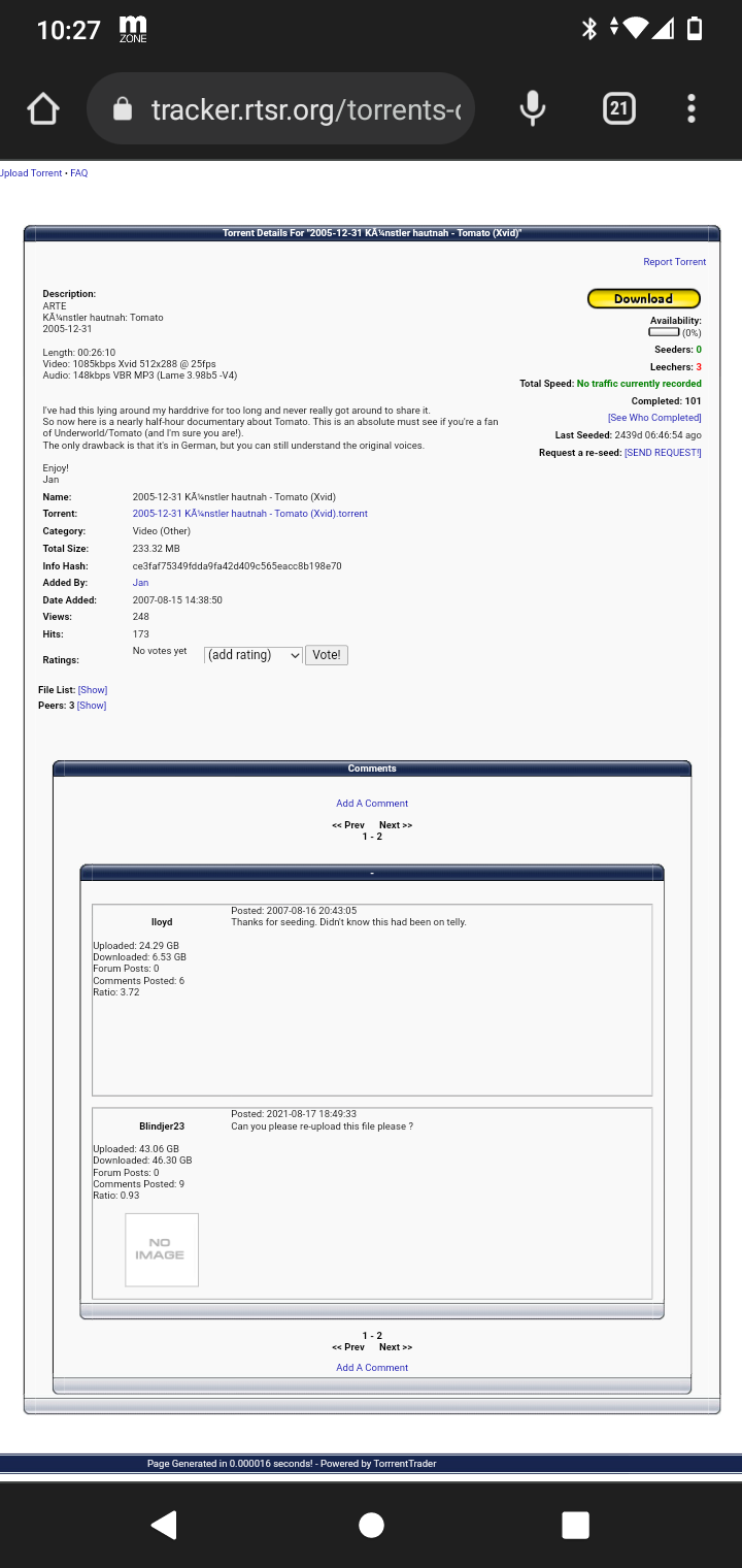 Hey guys, so I noticed this unseeded file titled "Künstler hautnah: Tomato" (released in 2005 ?). And the description states that it's a documentary about the graphic art company Tomato that Underworld is apart of. So does anybody have this file to share and also reupload / reseed it please ?.... I'm super curious to see what's on there.