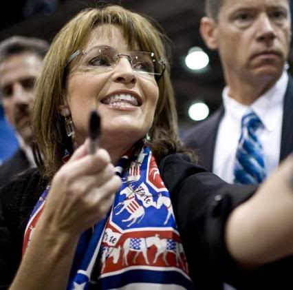 When I saw this clip today my first thought is Palin going rouge, but since she is struggling to get through the lines even by her own standards, I don't know what to think. Money quote: "See, under a big government, more tax agenda, what you thought was yours would really start belonging to somebody else, to everybody else. If you thought your income, your property, your inventory, your investments were, were yours, they would really collectively belong to everybody. Obama, Barack Obama has an ideological commitment to higher taxes, and I say this based on his record... Higher taxes, more government, misusing the power to tax leads to government moving into the role of some believing that government then has to take care of us. And government kind of moving into the role as the other half of our family, making decisions for us. Now, they do this in other countries where the people are not free. Let us fight for what is right. John McCain and I, we will put our trust in you." Jason |