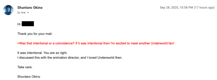 Finally, a few weeks ago I directly emailed the artist, Shuntaro Okino, to ask, out of curiosity. I didn't expect a response and forgot about it. Today when I checked my email I got a reply!