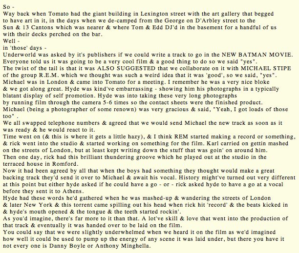 Re: Underworld mention by Michael Stipe in Pitchfork