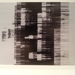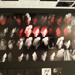 The basement floor was a room where Karl Hyde did a live art creation on Friday afternoon for special guests/media only. He had painted white streaks all over the walls and black text over that. There was also red and white stripped ribbons hanging from the ceiling to the floor. There was some installation music from Rick Smith playing in the background.