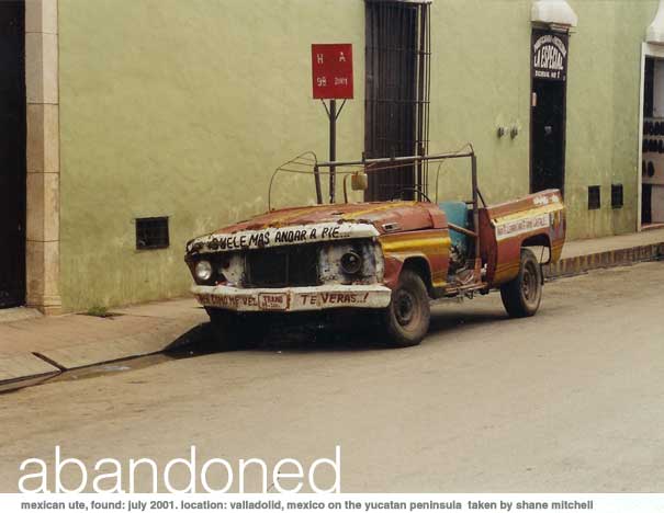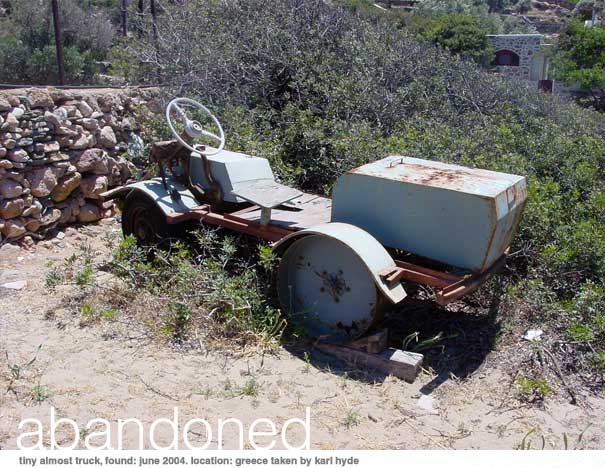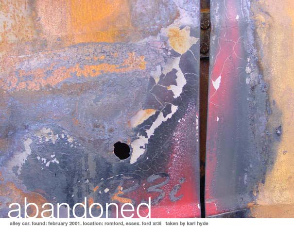 Abandoned is a gallery of decaying vehicles put together by Karl Hyde and Scott Warner. The initial selections were provided from images taken by Karl during early 2001, with the intent to keep the collection dynamic by allowing submissions from site visitors.
