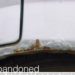 Please include the month and year you took the images and the location (city) where the car was parked. We will not use all submissions. Ideally, we’re looking for numerous images of the same vehicle, some showing the entire vehicle and others illustrating up close the current state of decay.